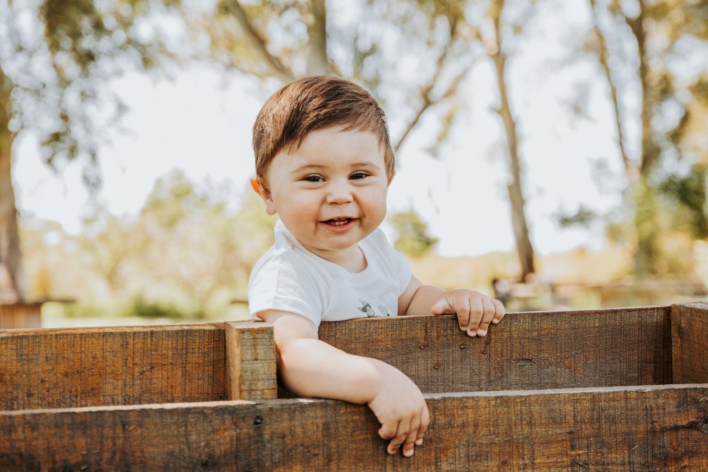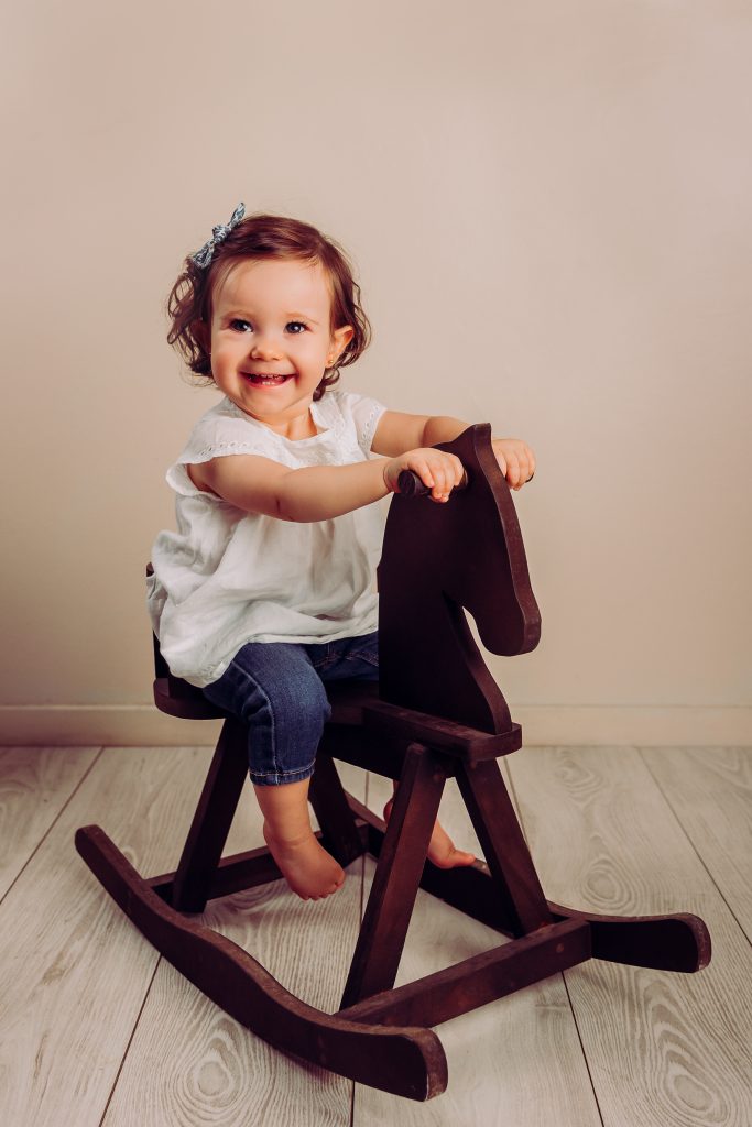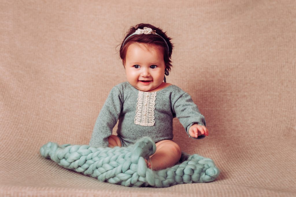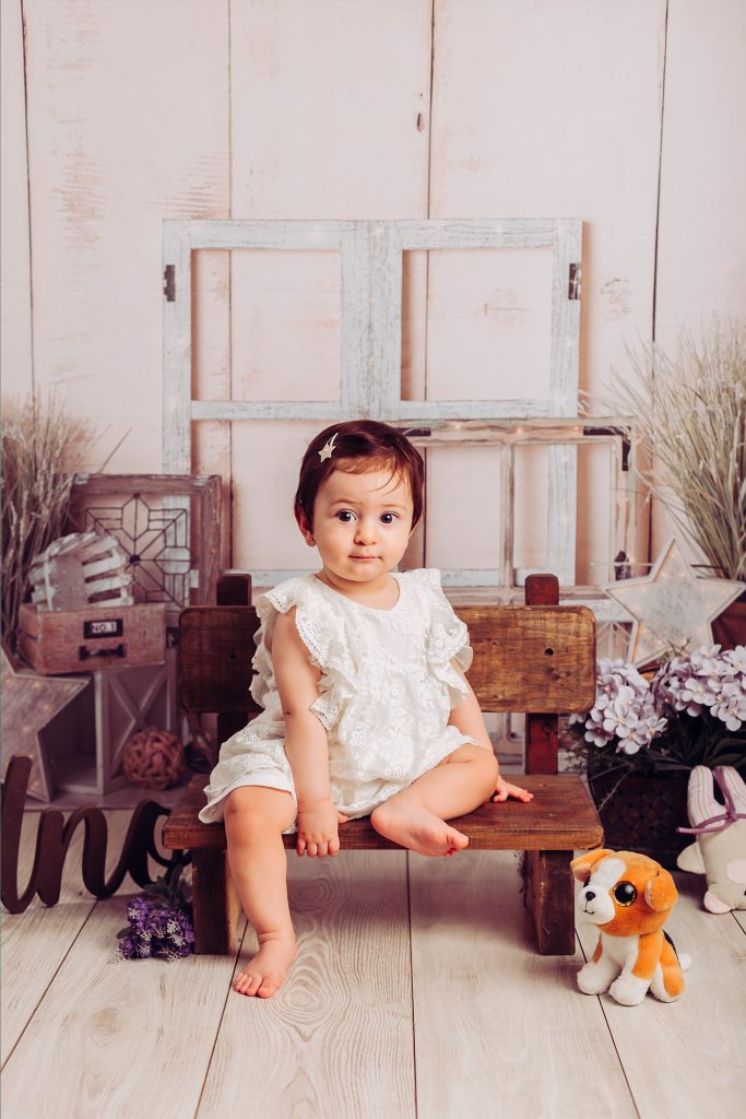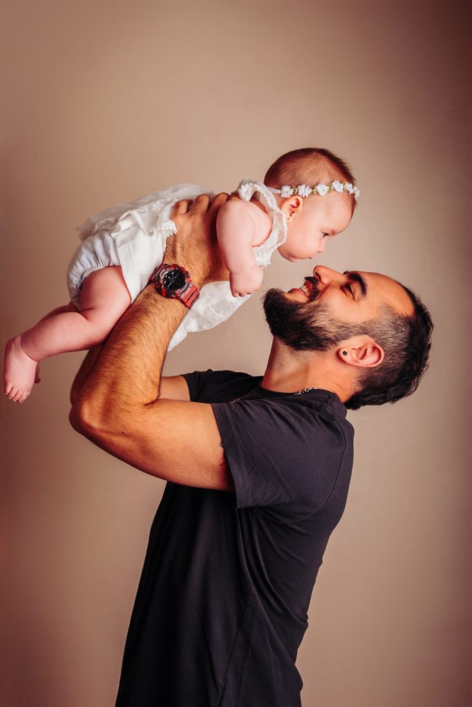 Hay familias que eligen hacer la sesión newborn y después la del primer año, pero hay dos momentos muy lindos para retratar: uno es alrededor de los 3 meses, cuando empiezan las sonrisas sociales, lxs bebés nos siguen con la mirada y hay interacción con la cámara. El otro momento es cuando empiezan a sentarse solitxs alrededor de los 7 meses. En ese momento ya podemos usar algunos props como cajones y contenedores, y hasta algún banquito 🙂