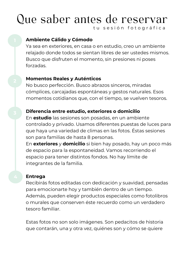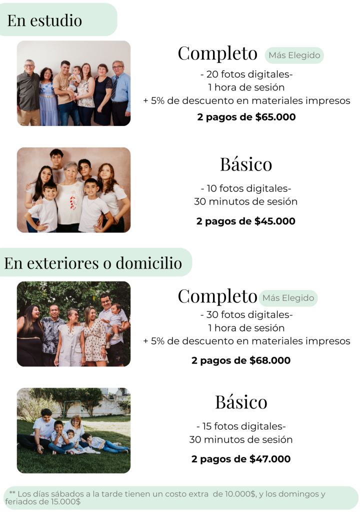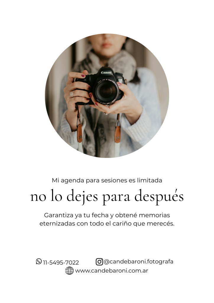 Para reservar la fecha es necesario señar con el primer pago, y debe estar completo al día de la sesión/ evento.