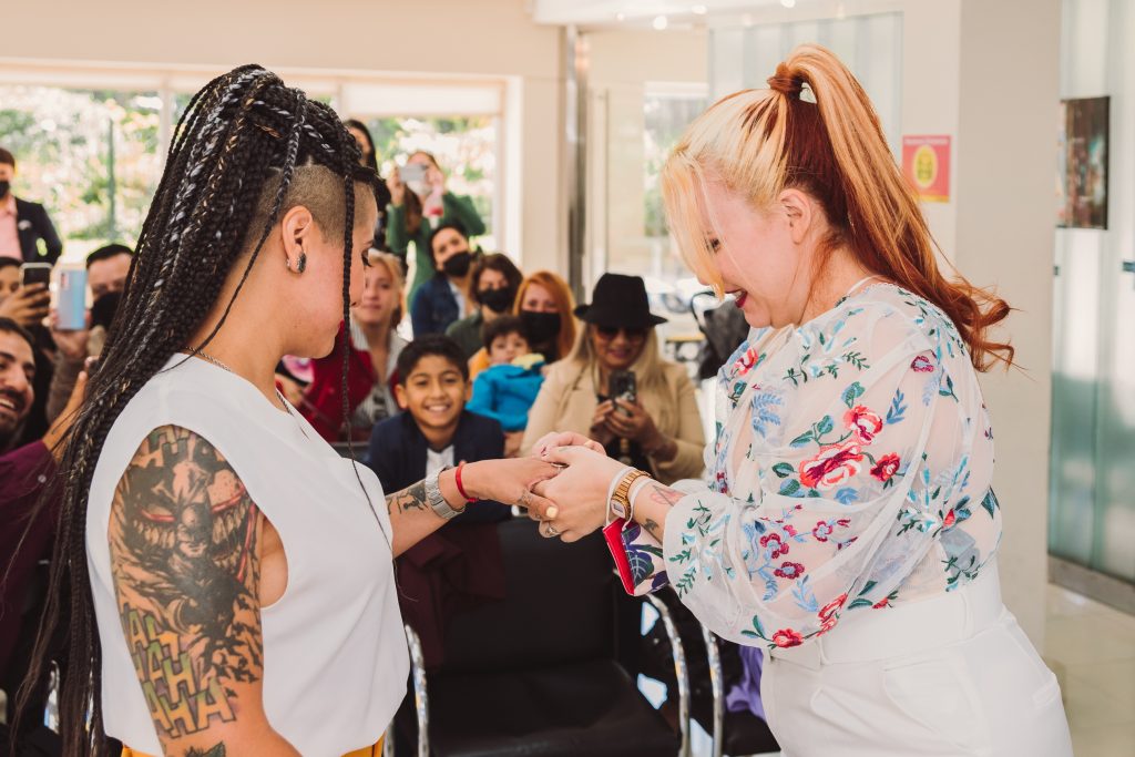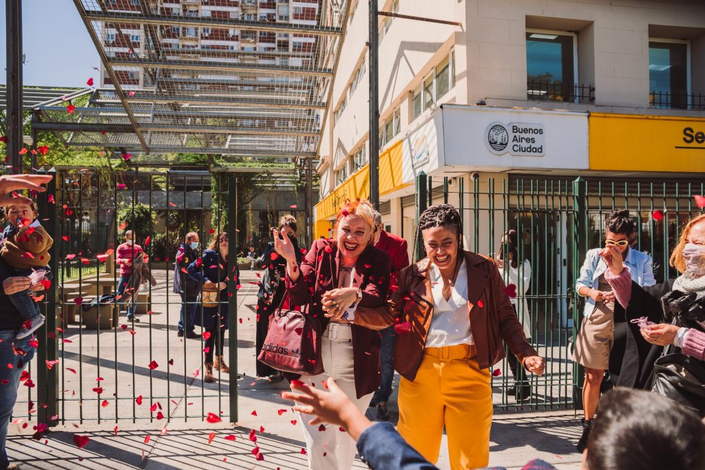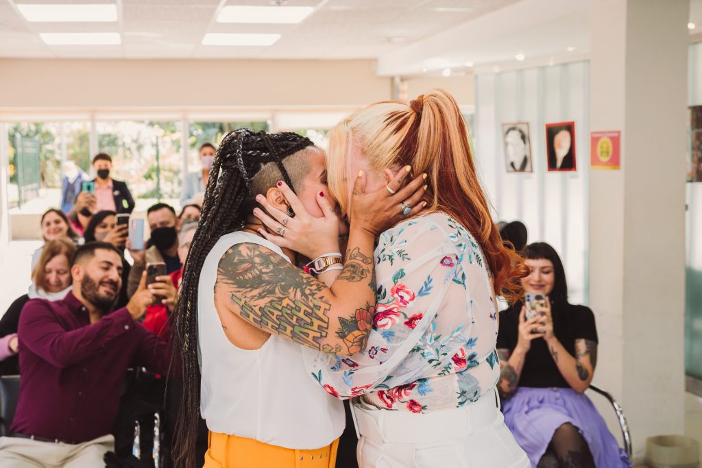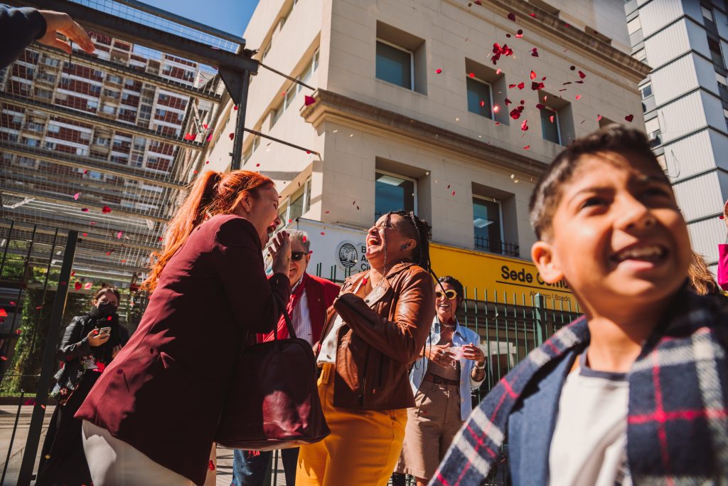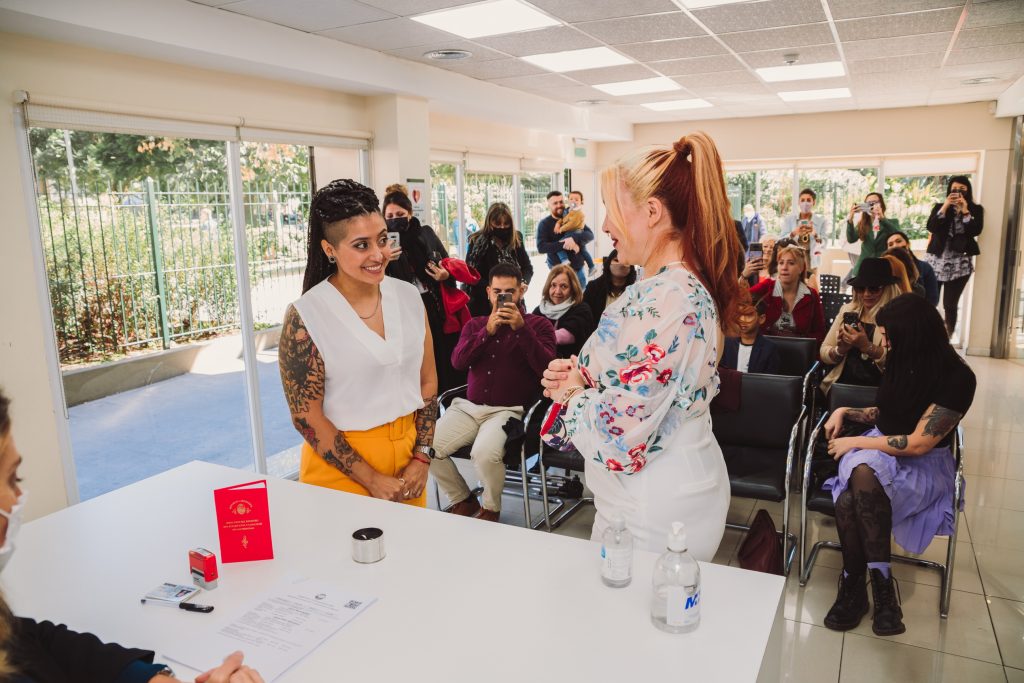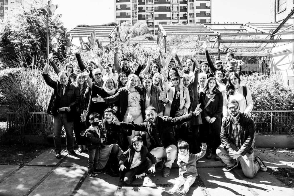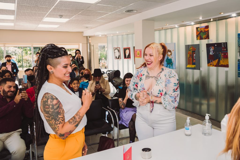 La ceremonia civil fué en el registro de Boedo. Hubo familia y amistades que vinieron desde muy lejos para participar de semejante acontecimiento, y desde antes de entrar ya había una atmósfera de buena onda.