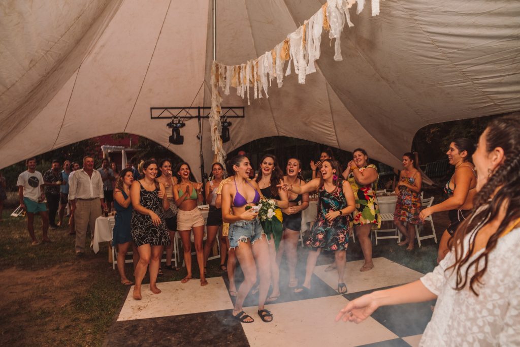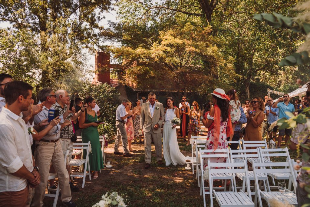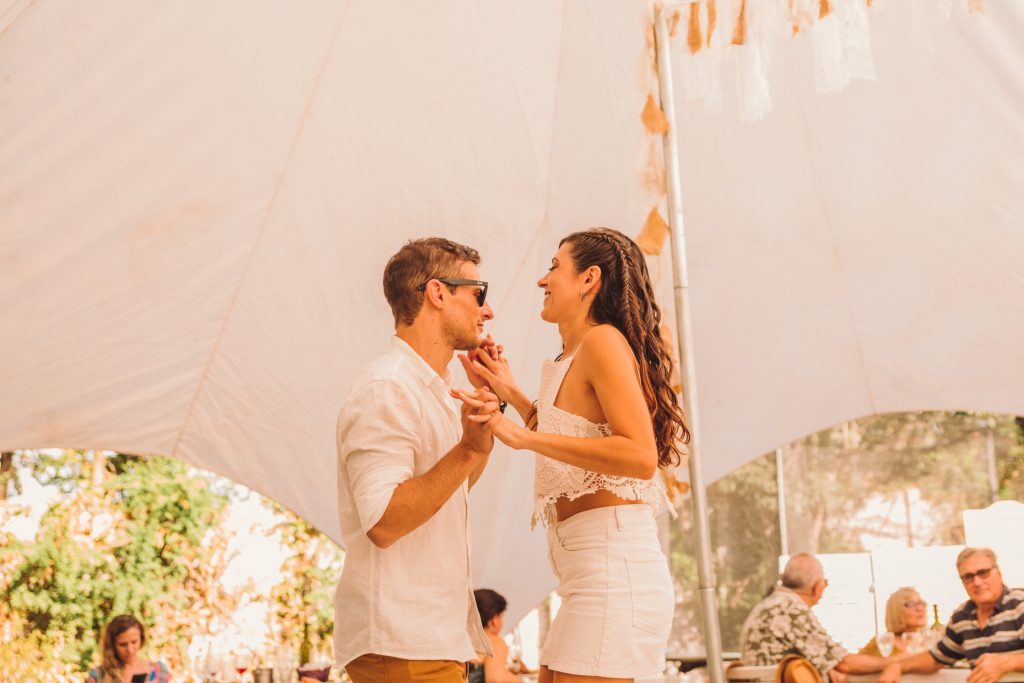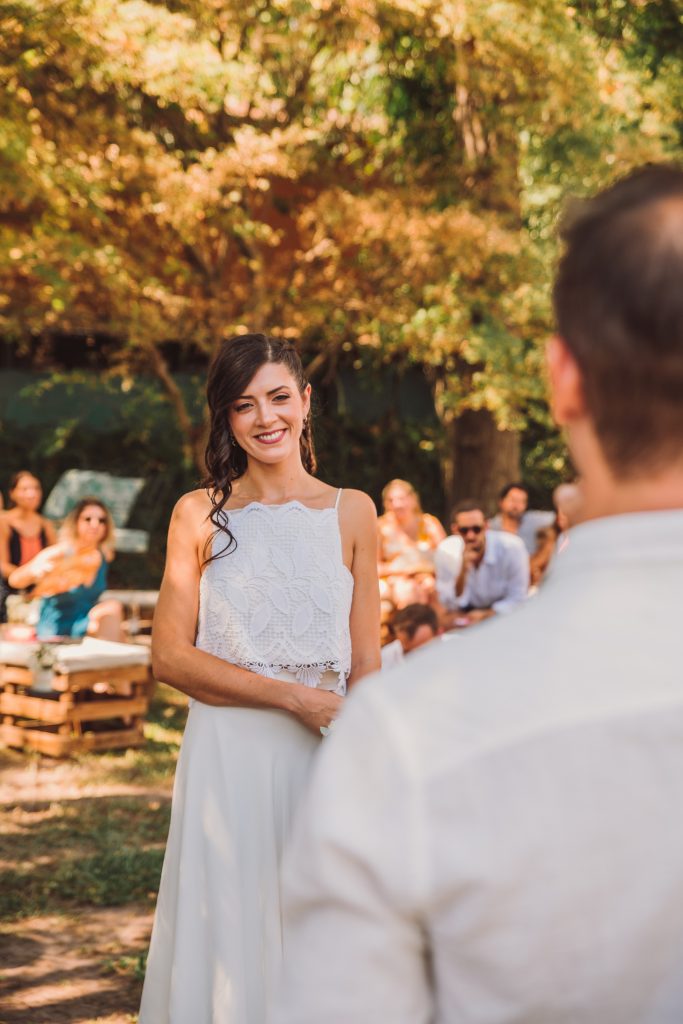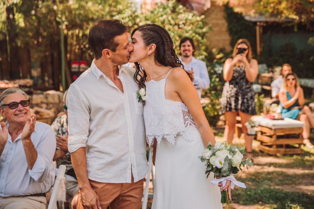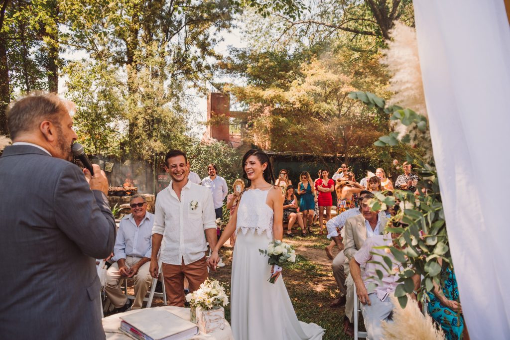 Alrededor del mediodía llegó el juez de paz para celebrar una ceremonia íntima y emotiva. Tras la ceremonia, los invitadxs disfrutaron de un delicioso almuerzo, acompañando la comida con risas y conversaciones, para luego jugar un poquito y empezar la primera tanda de baile.