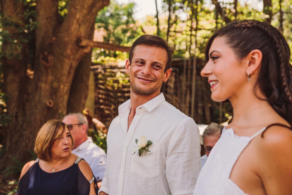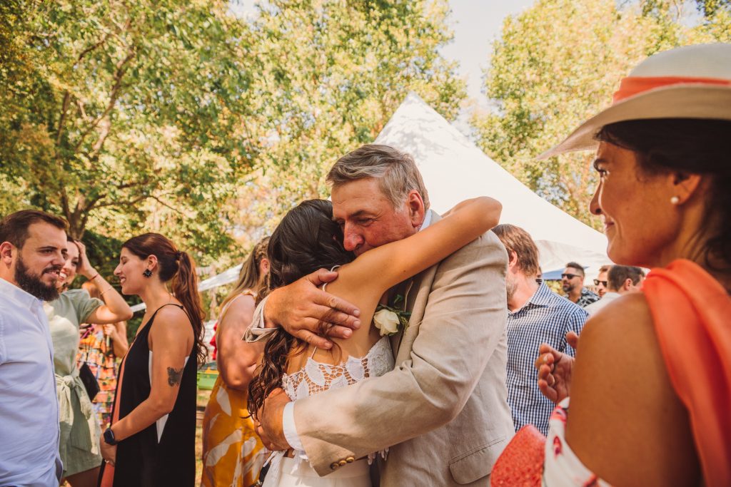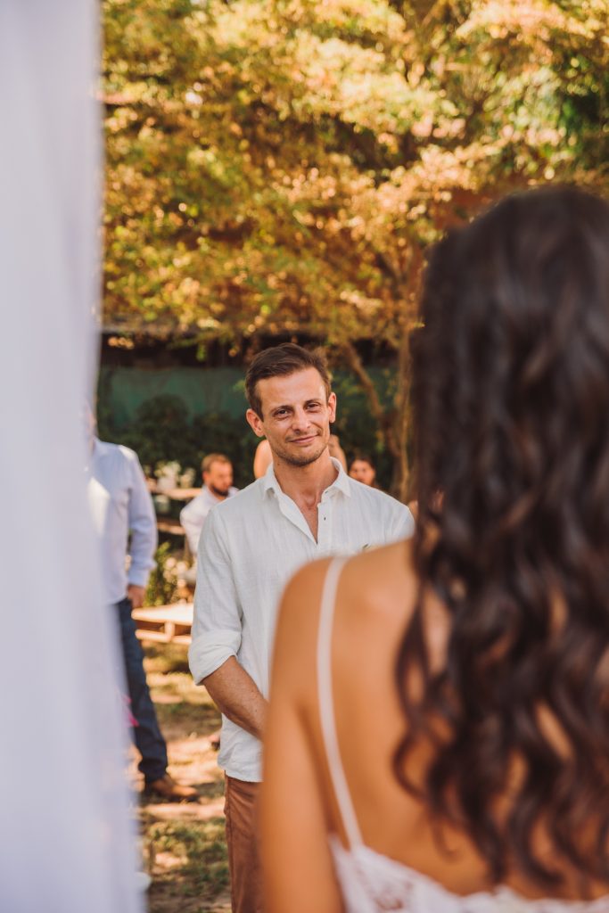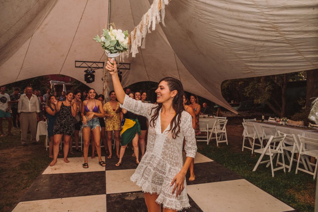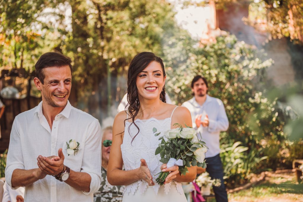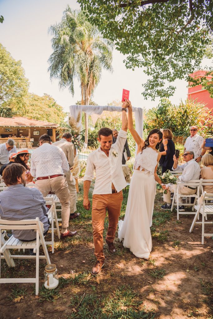 Alrededor del mediodía llegó el juez de paz para celebrar una ceremonia íntima y emotiva. Tras la ceremonia, los invitadxs disfrutaron de un delicioso almuerzo, acompañando la comida con risas y conversaciones, para luego jugar un poquito y empezar la primera tanda de baile.