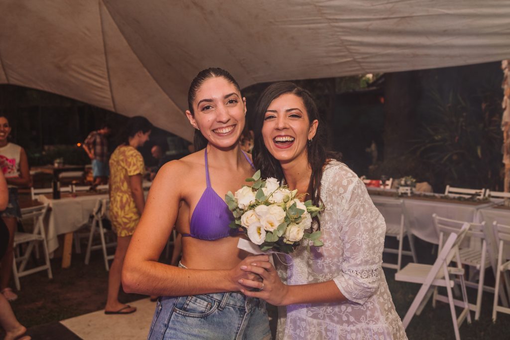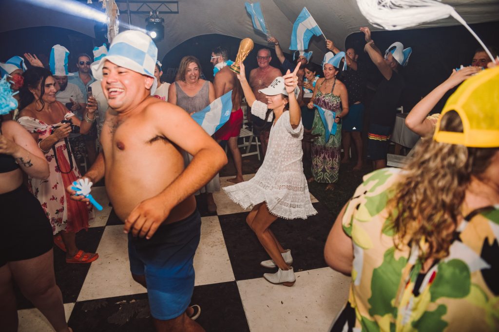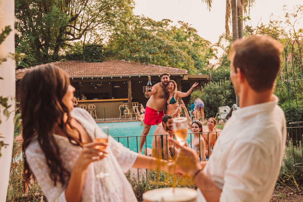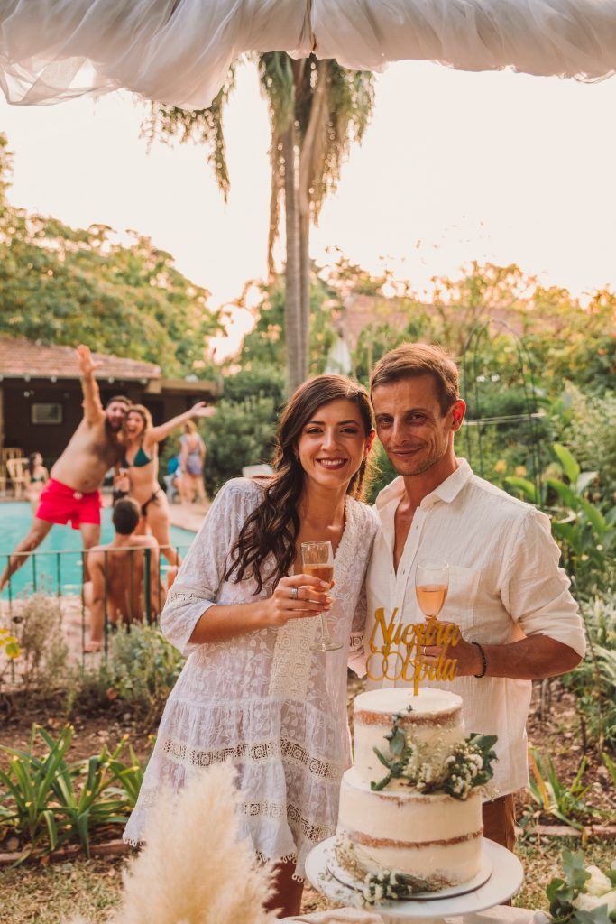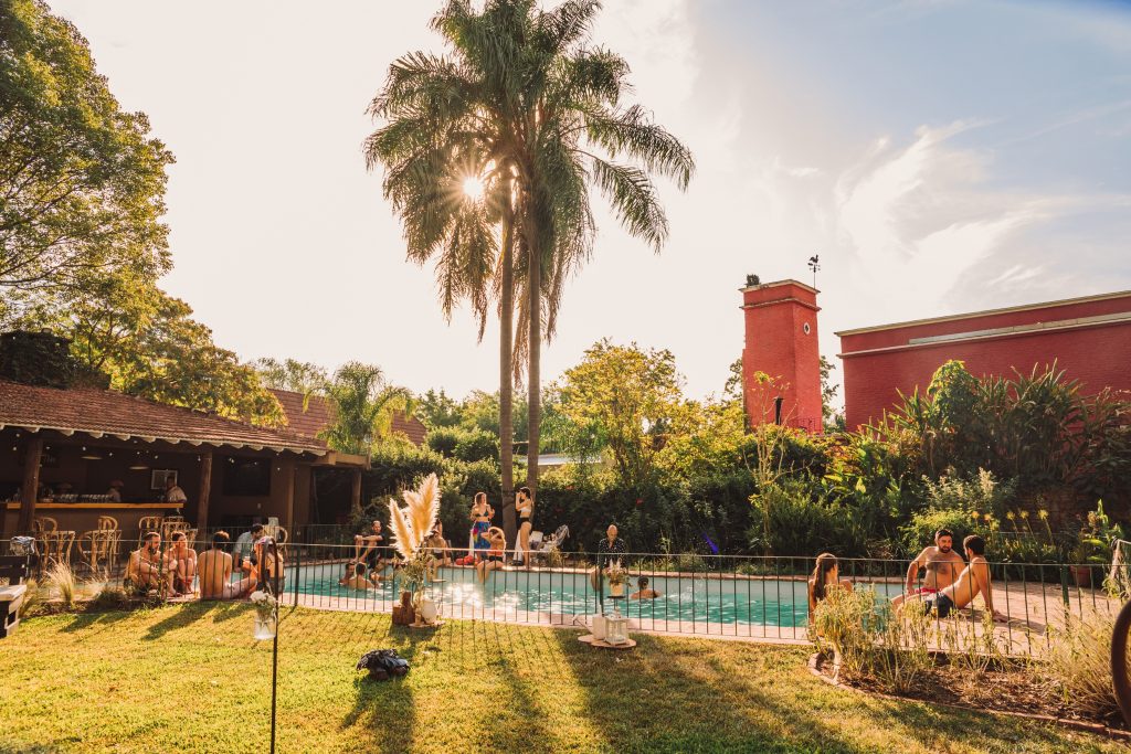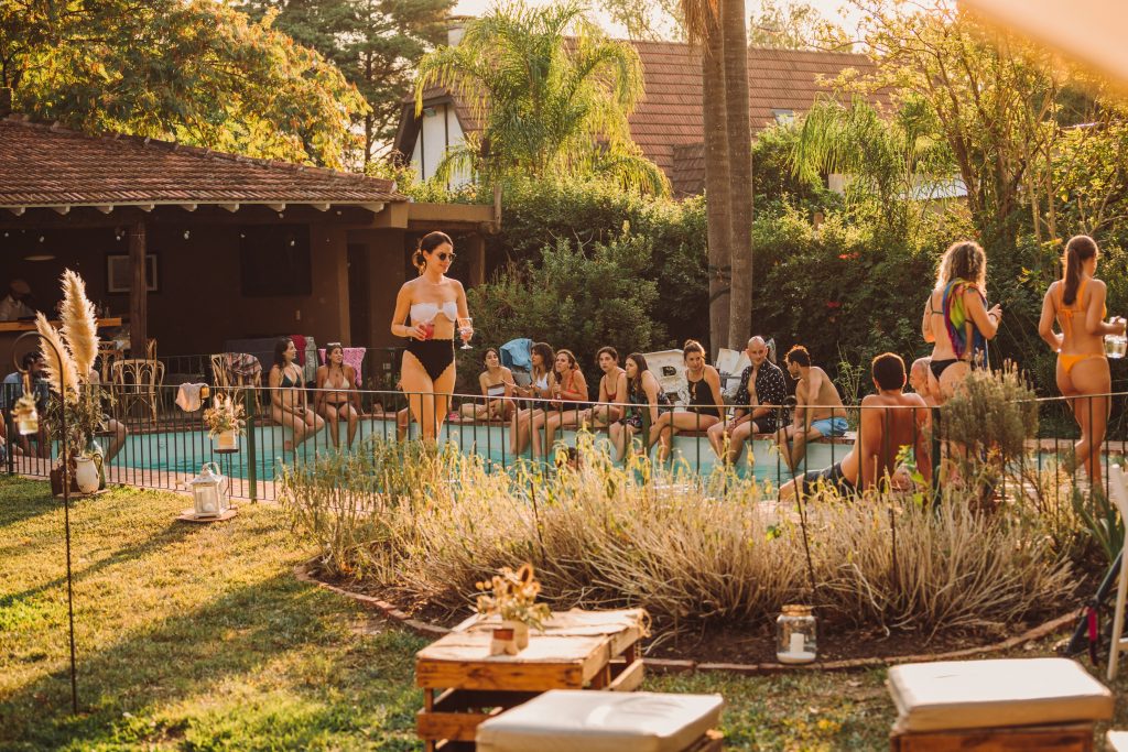 A medida que el calor del día se intensificaba, la pileta se convirtió en una refrescante atracción para los invitadxs, quienes aprovecharon para darse un chapuzón y disfrutar de un momento con tragos y postrecitos. Al atardecer hubo corte de torta, y mientras anochecía volvía el baile.