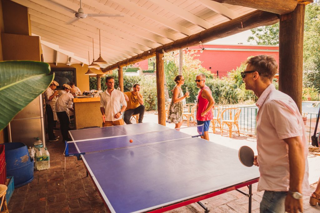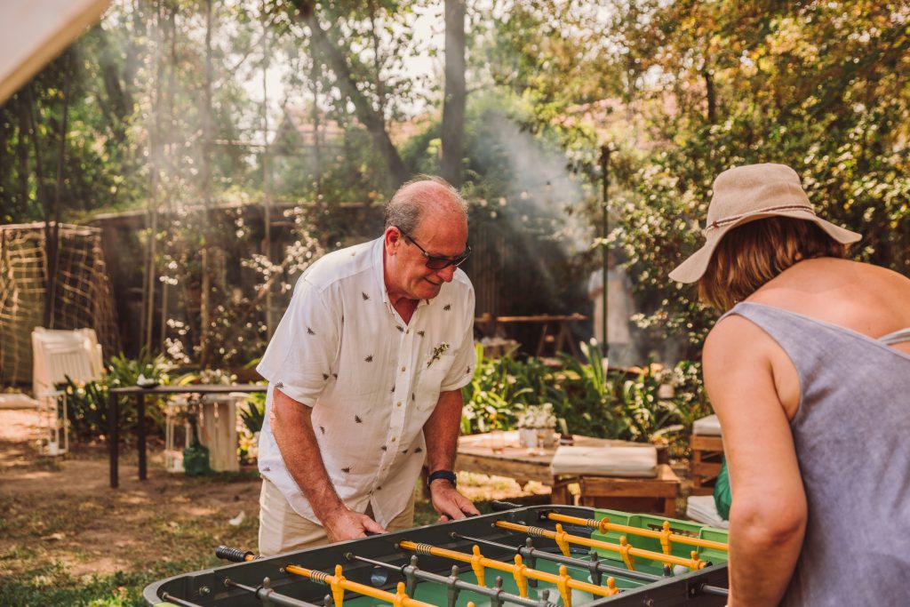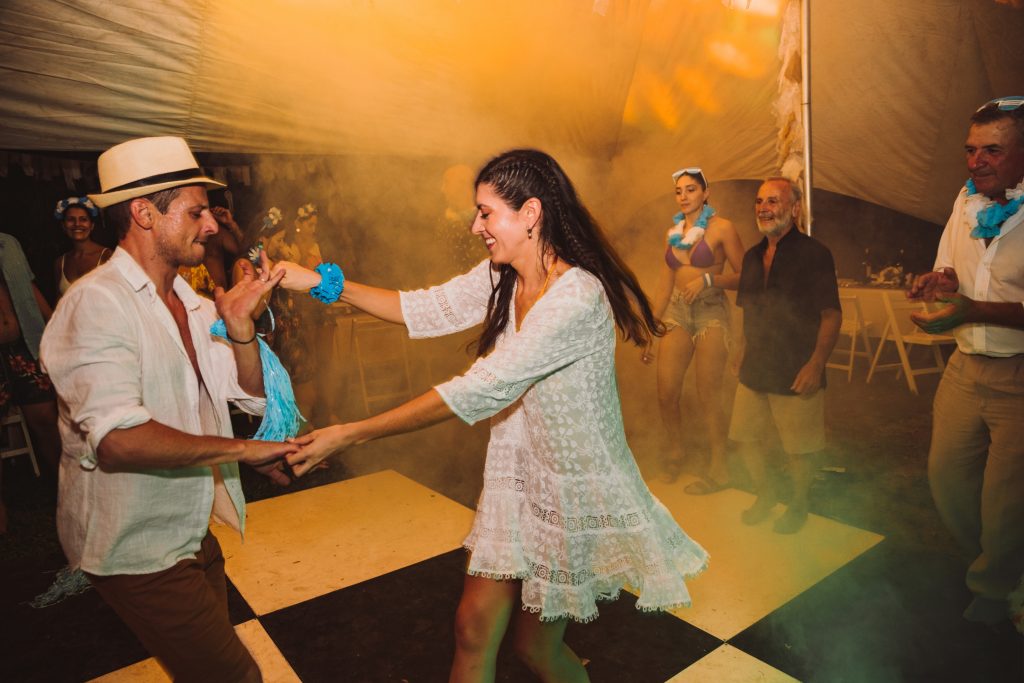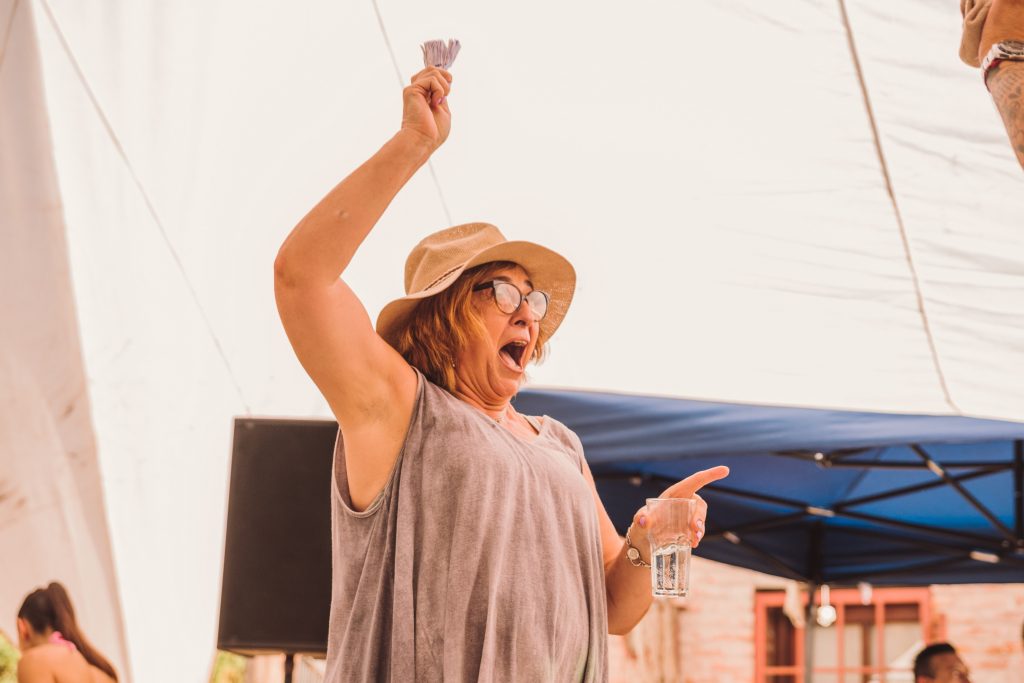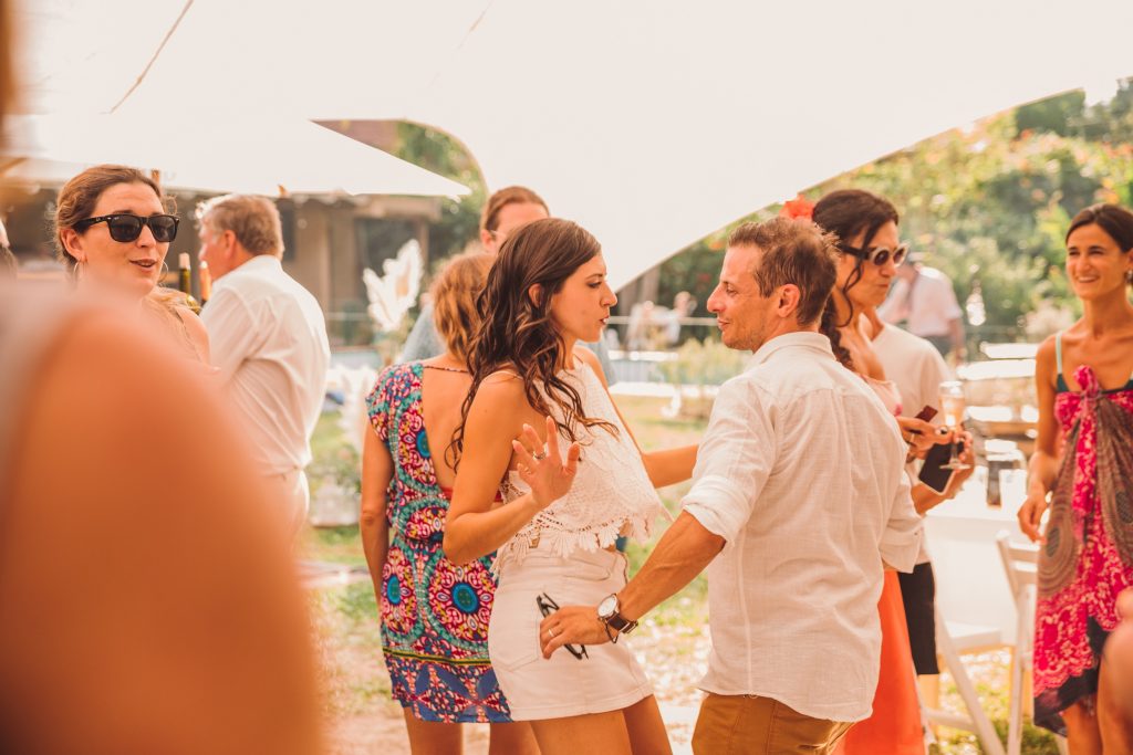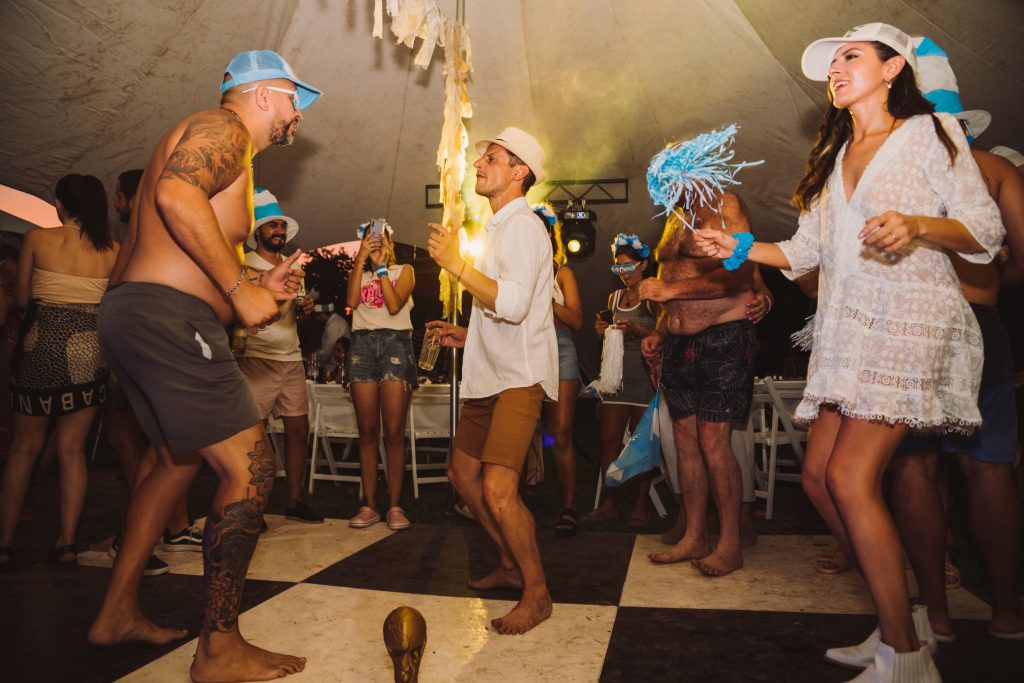 A medida que el calor del día se intensificaba, la pileta se convirtió en una refrescante atracción para los invitadxs, quienes aprovecharon para darse un chapuzón y disfrutar de un momento con tragos y postrecitos. Al atardecer hubo corte de torta, y mientras anochecía volvía el baile.