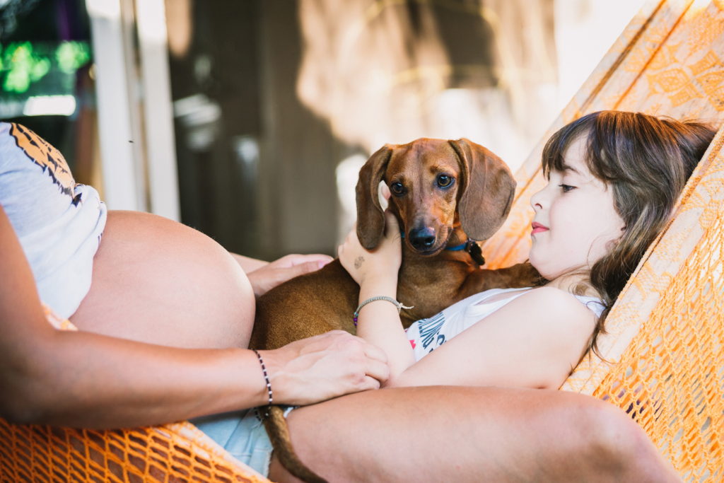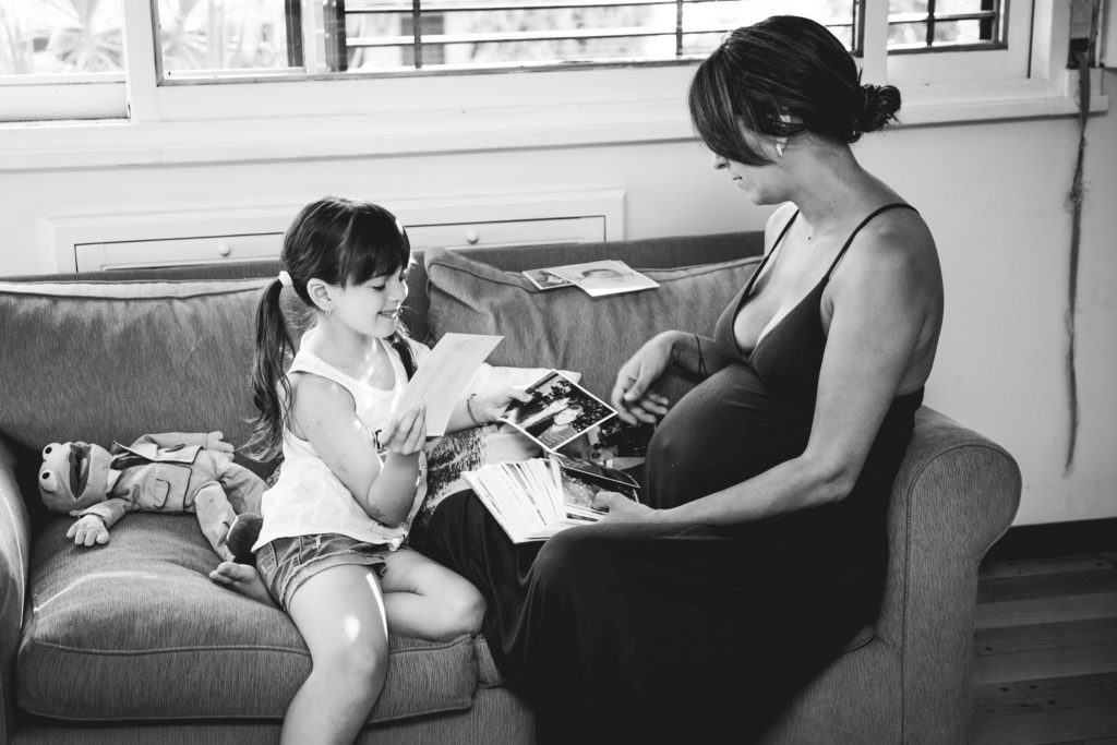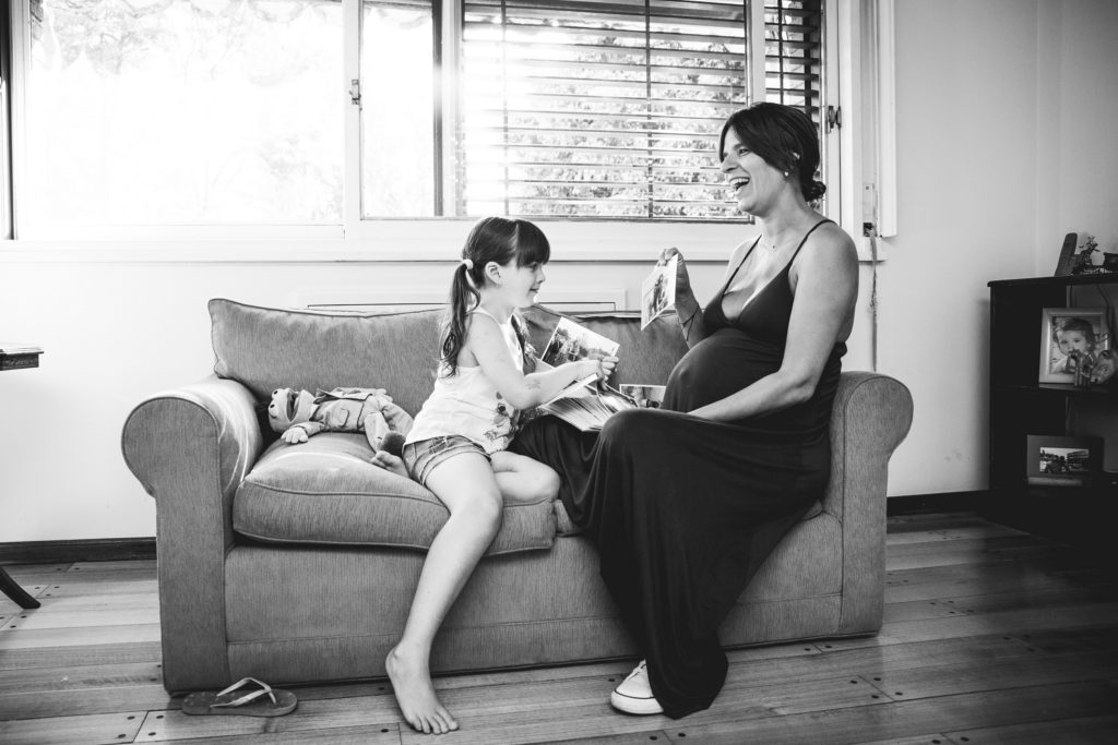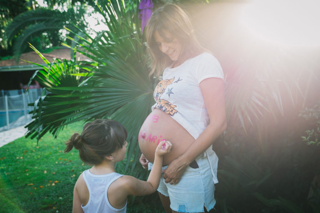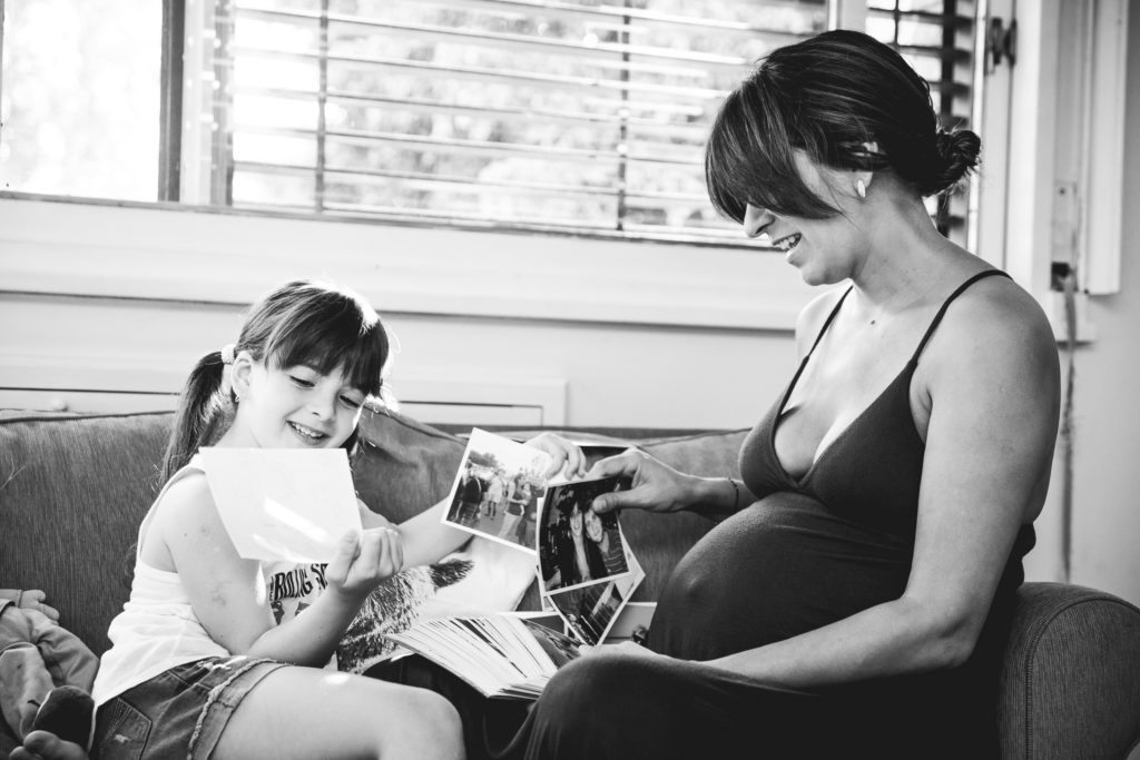 La primer sesión fué un documental familiar en casa de Hurlingham. Se les ocurrió empezar mirando fotos, linda situación para registrar! Se nota en las expresiones de Pepa que lxs niñxs disfrutan ver fotos de cuando eran más chiquitxs y escuchar historias de cuando lxs esperaban a ellxs! Por eso es importante imprimirlas!. Hicimos algunas fotos dentro de la casa y después en el patio donde participaron los perros, y terminamos con una obra de arte en panza!