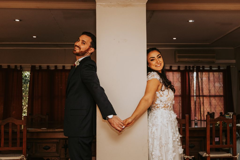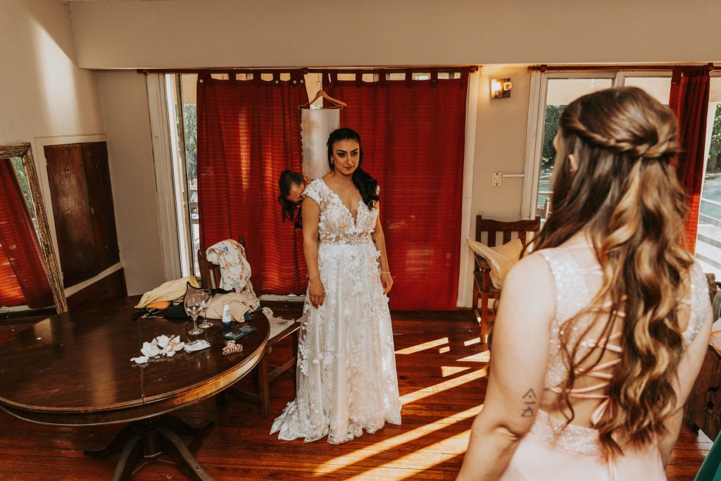 Llegué a Quinta El Tata a la tardecita, justo a tiempo para capturar los últimos toques de maquillaje de la novia. Al ratito llegaron sus amigas para ayudarla a ponerse el vestido. Antes de la ceremonia, hicimos unas fotos especiales con el novio, cuidando de que no se vieran. Me resulta muy divertido hacer ese tipo de fotos!