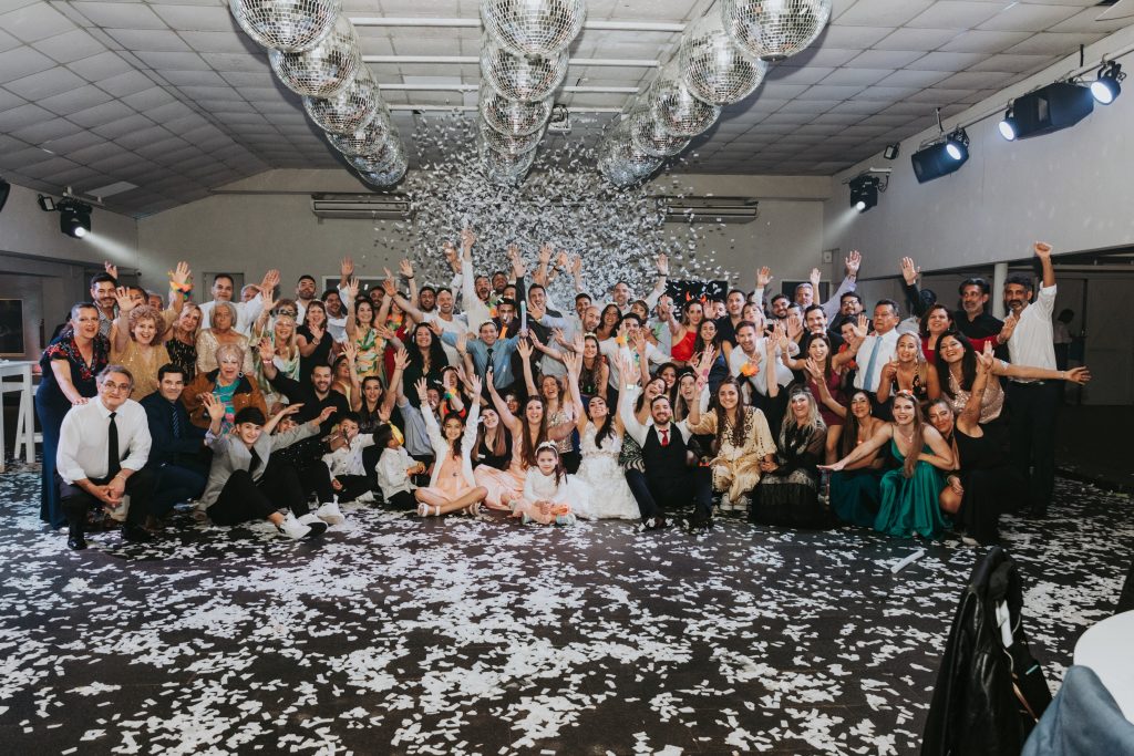 Al caer la noche comenzó la recepción con un ambiente cálido y acogedor, que aprovechamos para hacer fotos con la familia y amigxs. Después, todxs se trasladaron al salón, donde una deliciosa cena y mucho baile mantuvieron la celebración viva en una noche llena de emociones.