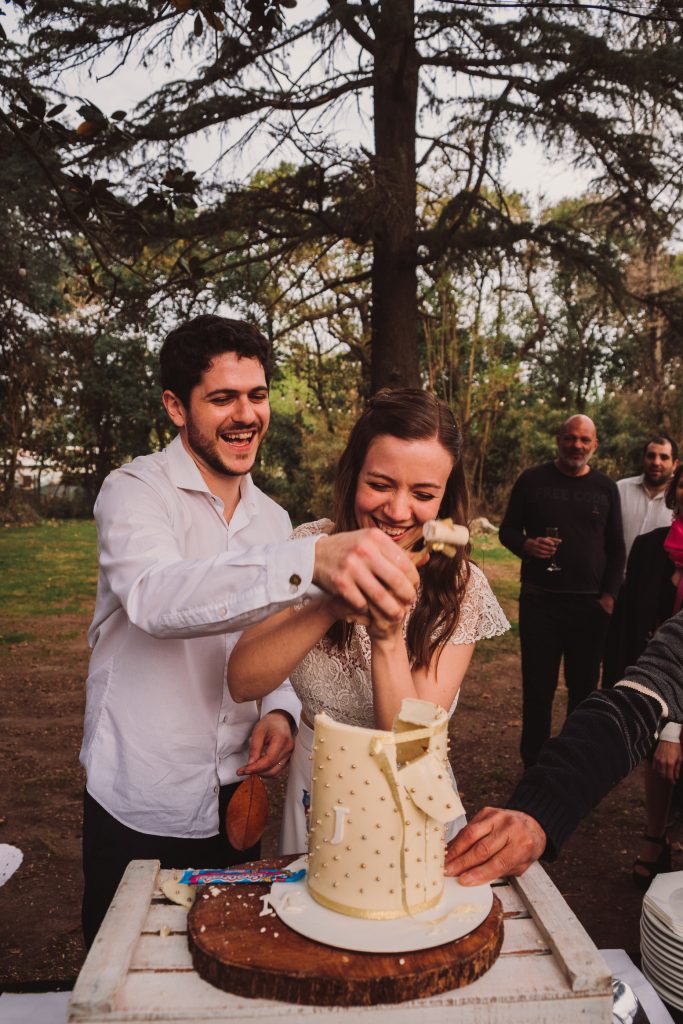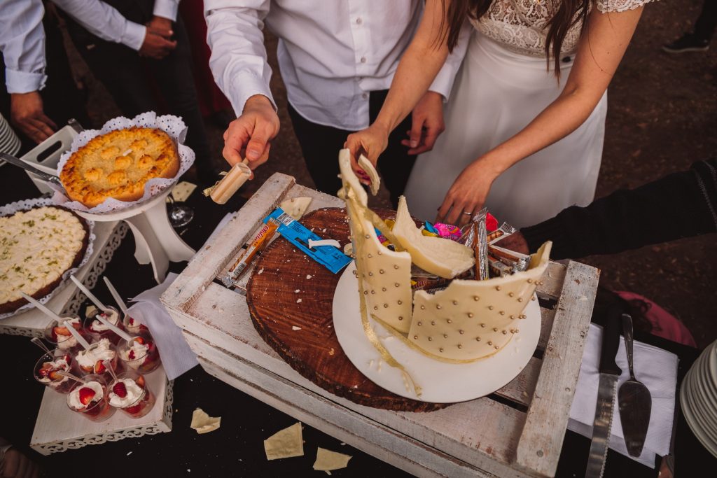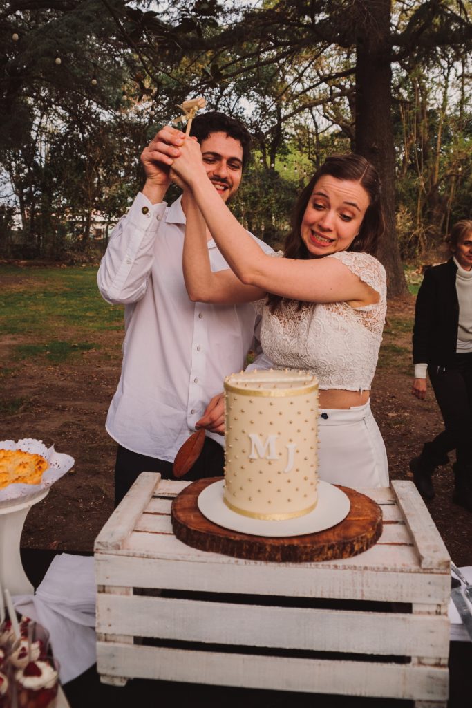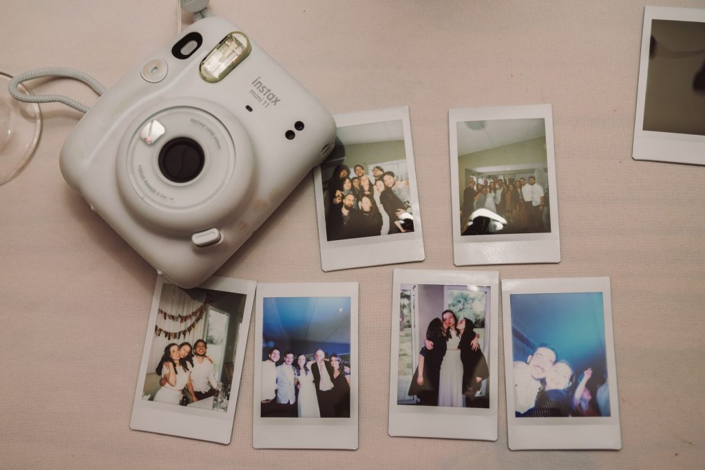 Entre los detalles a destacar puedo mencionar la camarita instantánea con la que lxs invitadxs creaban sus propios recuerdos del día para dejarles a la pareja, y la torta piñata súper divertida!