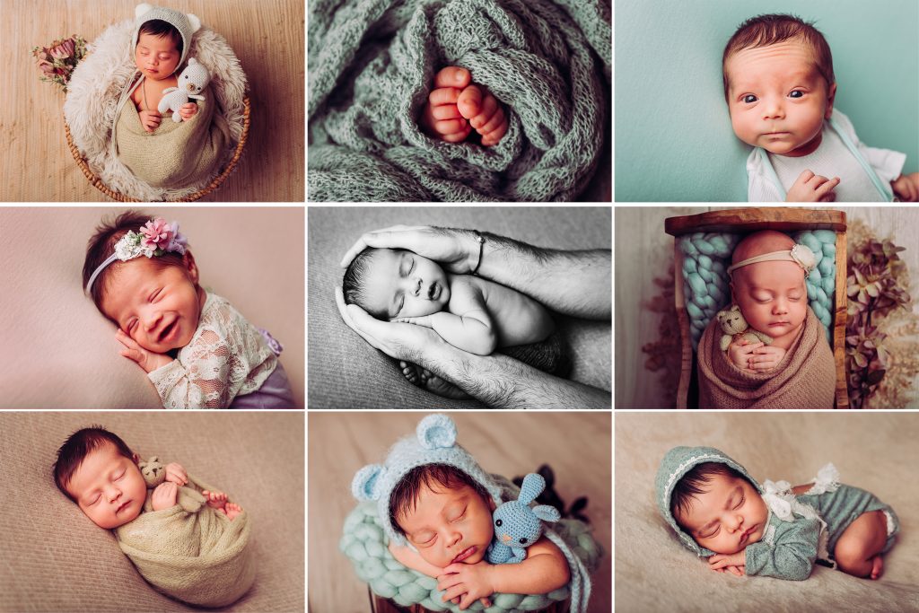 En las sesiones en estudio nos centramos en el bebé y el posado, tanto en puff como en contenedores. Para que ésto sea posible el bebé debe estar dormido, por lo que nos tomamos todo el tiempo que el necesite para alimentarse y estar con su mamá para relajarse…